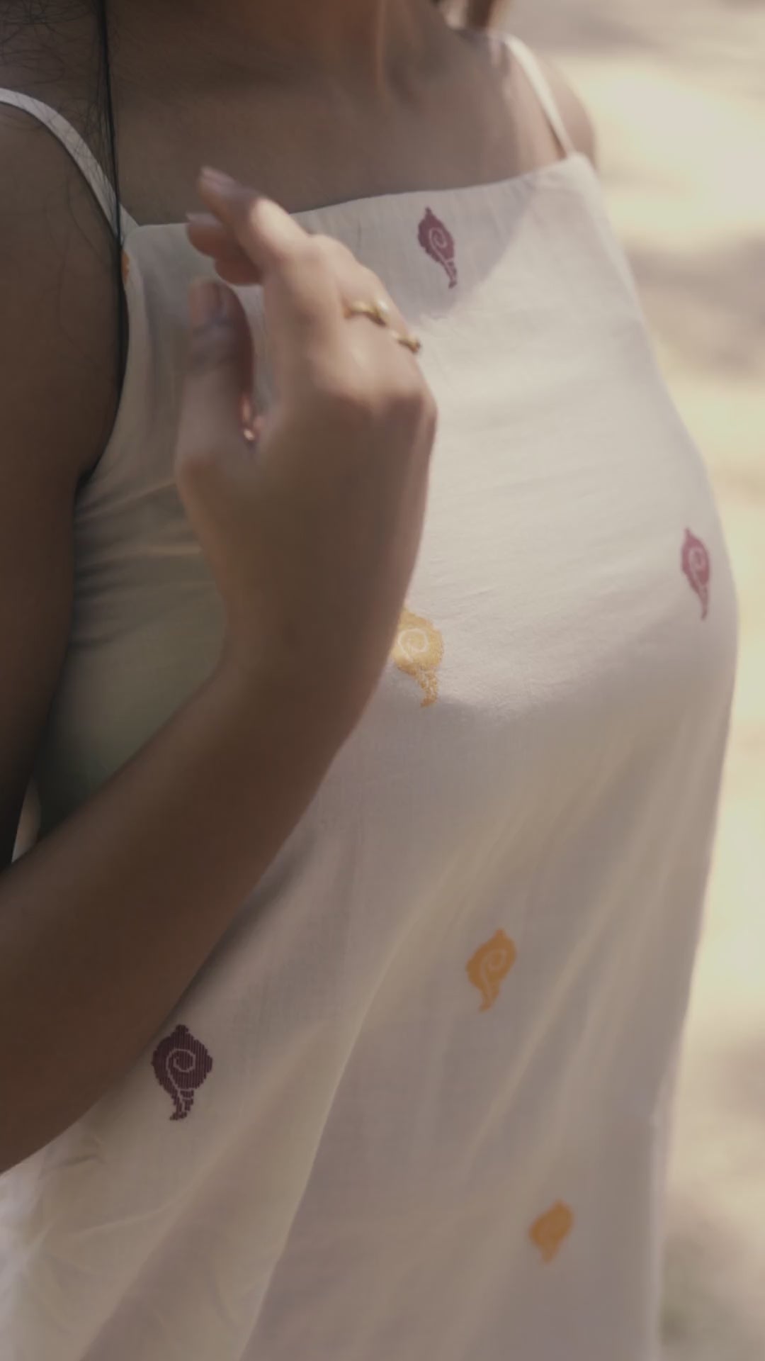 Sleeveless slip dress offering both comfort and the go to look, the hand woven conch is a quite artisanal detail ." Classic Venkatagiri hand woven butti SHANKAM"